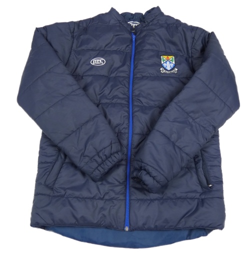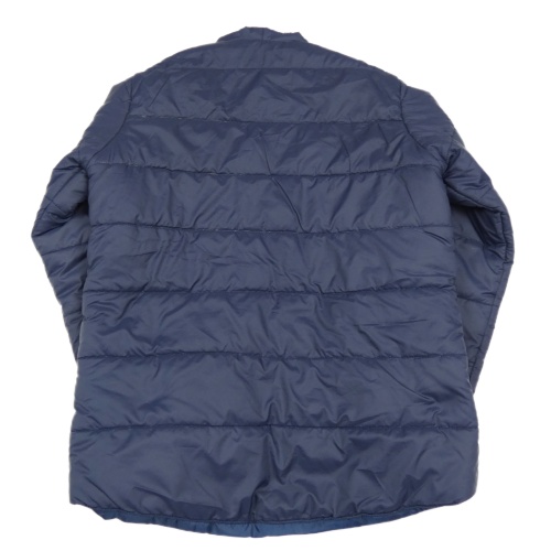Tmavomodrá šušťáková prešívaná zateplená bunda s nášivkami