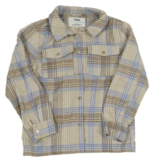 Béžovo-svetlomodrá kockovaná košeľová bunda Yigga