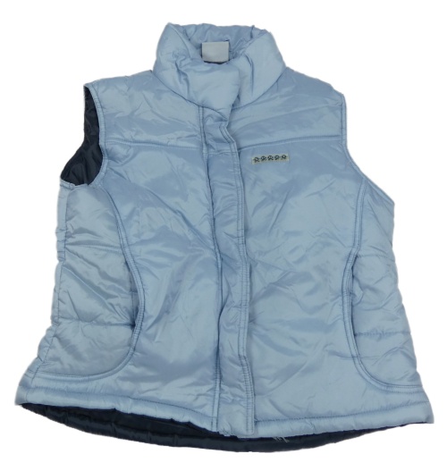 Svetlomodrá šušťáková zateplená vesta s nášivkou