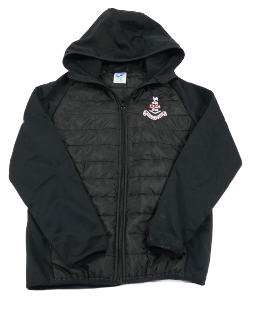 Čierna softshellovo/šusťáková bunda s výšivkou a kapucňou Joma