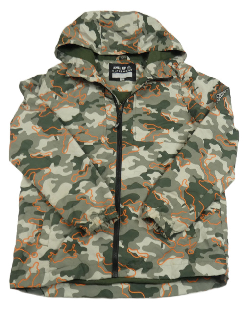Kaki-oranžová army šušťáková jarná bunda s nášivkou a kapucňou F&F