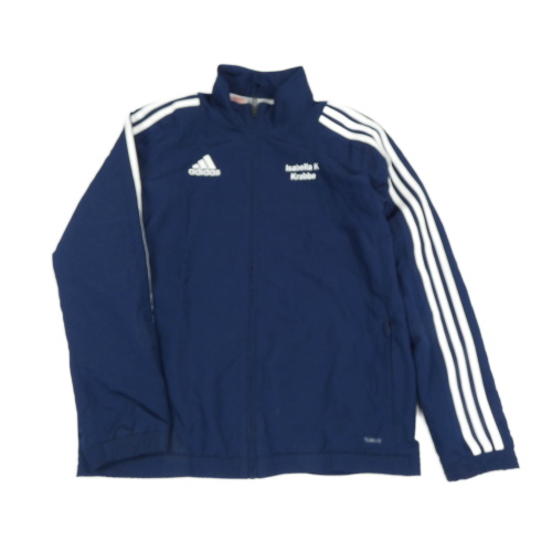 Tmavomodro-biela šušťáková športová bunda s pruhmi a logom Adidas