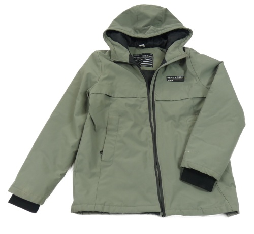 Světlekhaki šušťáková zimná bunda s nápisom a kapucňou Yigga