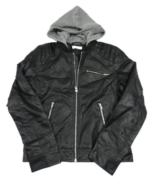 Čierna koženková podšitá bunda s teplákovou kapucňou H&M