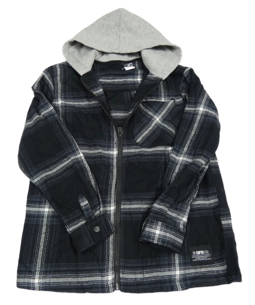 Čierno-modro-bielo-sivá kockovaná košeľová bunda s kapucňou Page one young