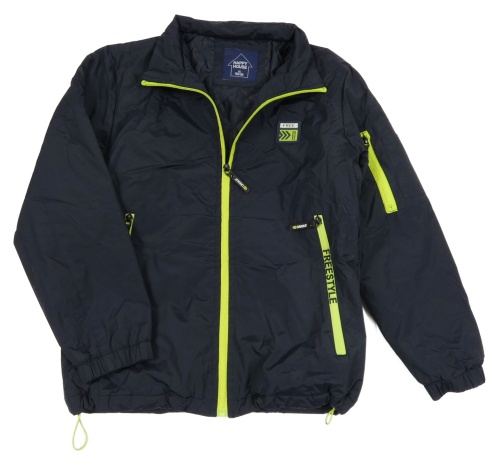 Tmavomodrá šušťáková zateplená bunda s neonovými prvky