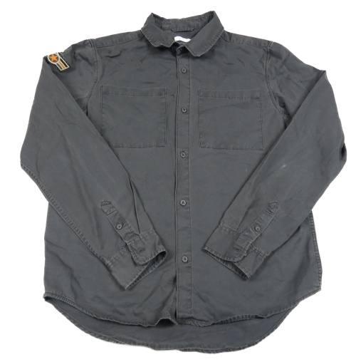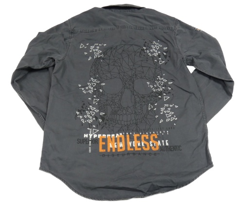 Antracitová plátenná košeľová bunda s lebkou a nápismi