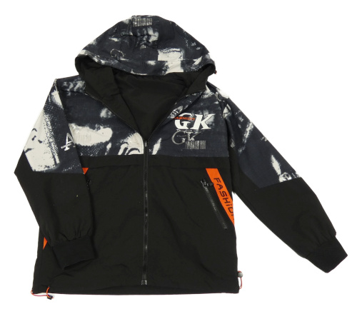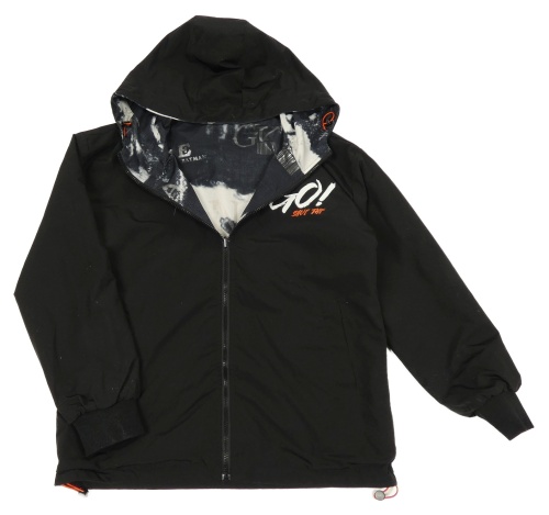 Černo-bílá/army šušťáková jarná obojstranná bunda s nápismi a kapucňou