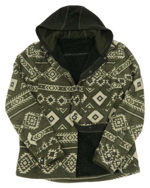 Khaki vzorovaná fleecová zateplená košeľová bunda s kapucňou St. Bernard