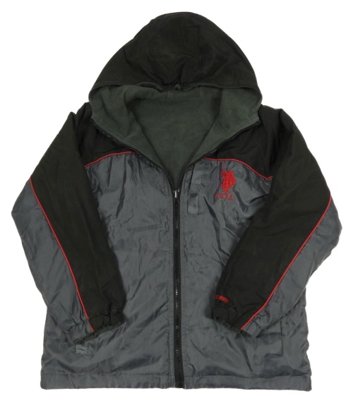 Čierno-sivá šušťáková jarná obojstranná bunda s kapucňou US Polo Assn vel.176