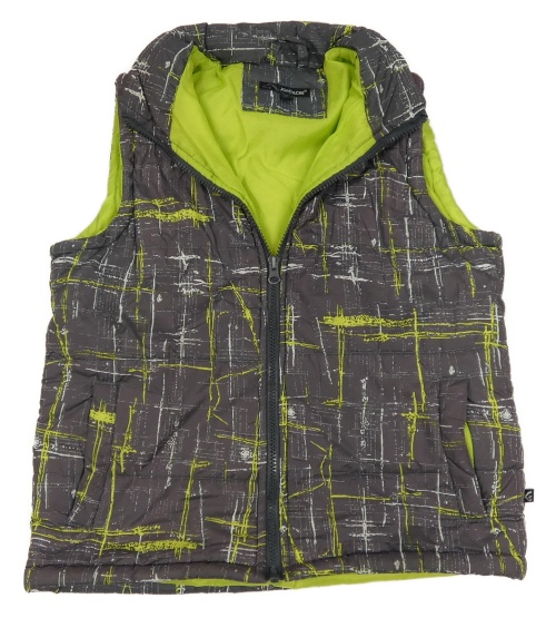 Sivá šušťáková zateplená vesta s fľakmi