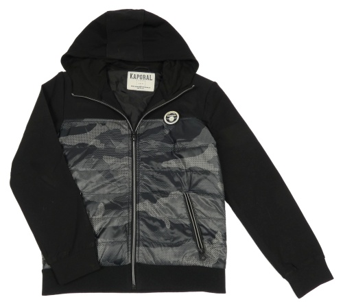 Čierno-tmavosivá šusťákovo/sportovní bunda s army vzorom a kapucňou