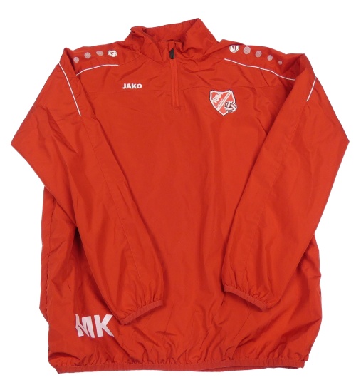 Červená šušťáková športová futbalová bunda so znakom JAKO