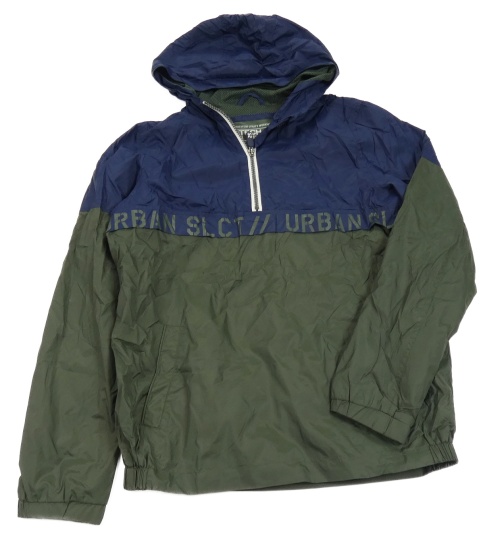 Tmavomodro-khaki šušťáková jarná bunda s nápismi a kapucňou C&A