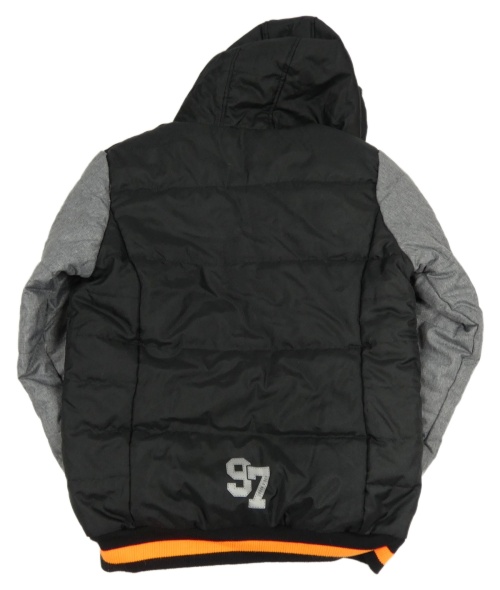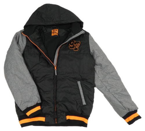 Čierno-sivá šušťáková zimná bunda s číslom a kapucňou Y.F.K.