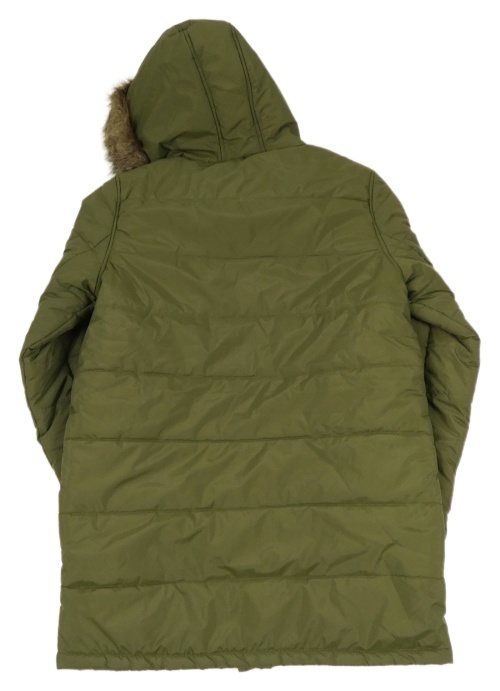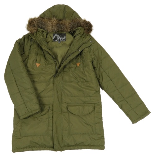 Khaki prešívaná šušťáková zimná bunda s kapucňou s kožešinou bpc