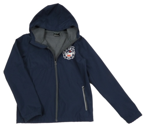 Tmavomodrá softshellová bunda s výšivkou a kapucňou