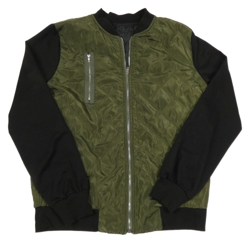 Khaki-černý šusťákový lehký bomber s mikinovymi rukávy