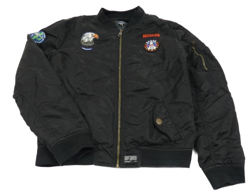 Černý šusťákový lehce zateplený bomber s nášivkami