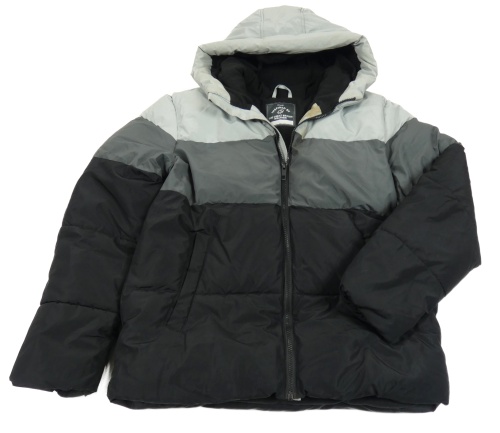 Čierno-tmavošedo-sivá kockovaná prešívaná šušťáková zimná bunda s kapucňou George