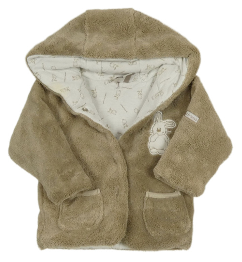 Béžový chlupatý zateplený kabátek so zajačikom a kapucňou
