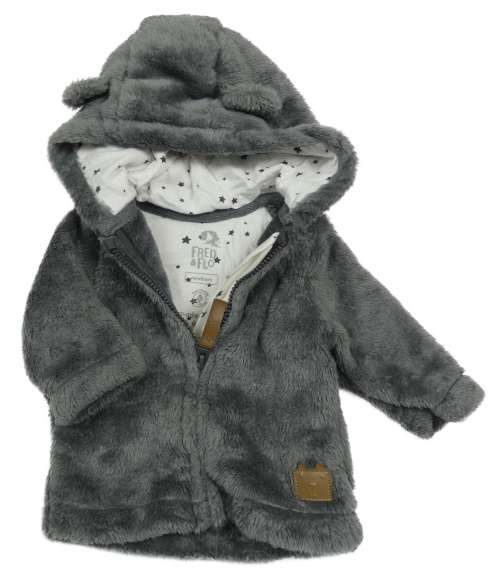 Tmavosivá plyšová bunda s medvedíkom a kapucňou s uškami F&F