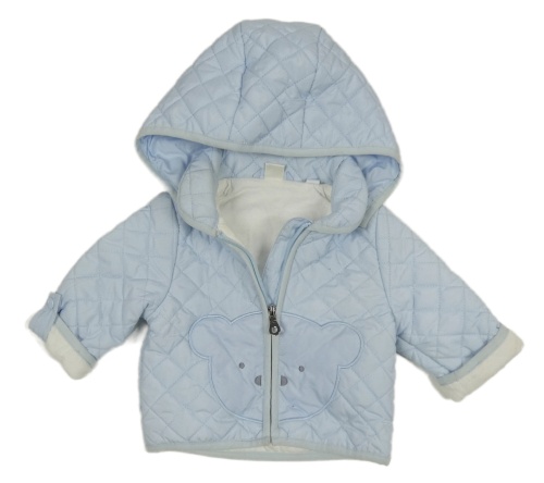 • Svetlomodrá prešívaná šušťáková zateplená bunda s medvěďom a kapucňou iDo