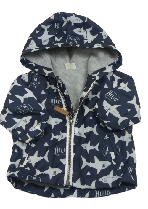 Tmavomodrá šušťáková jesenná bunda so žralokmi a kapucňou F&F