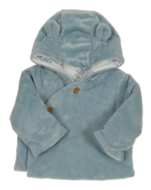 Modrošedý plyšový zateplený kabátek s kapucňou s uškami Tu
