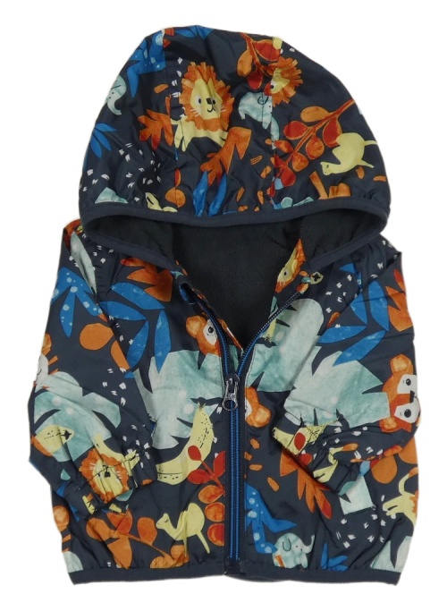 Tmavomodrá šušťáková jarná bunda so zvieratkami a kapucňou Nutmeg