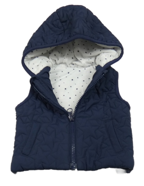 Tmavomodrá šušťáková prešívaná zateplená vesta s kapucňou Tu
