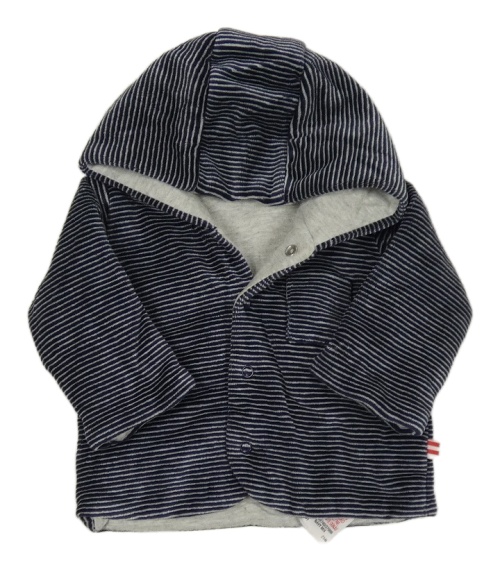 Tmavomodro-světlešedý pruhovaný sametový zateplený kabátek s kapucňou M&S