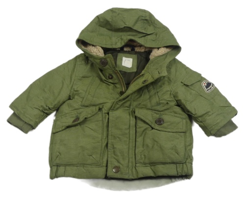 Zelená šušťáková zimná bunda s nášivkou a kapucňou GAP