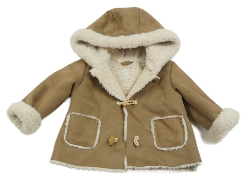 Hnědý flaušový zateplený kabátek s kapucňou Zara
