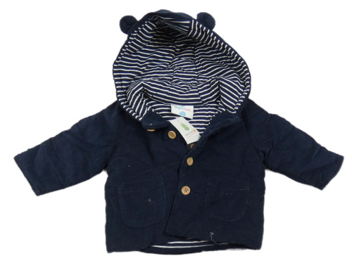 Nová - tmavomodrá menšestrová zateplená bunda s kapucňou s uškami Topomini