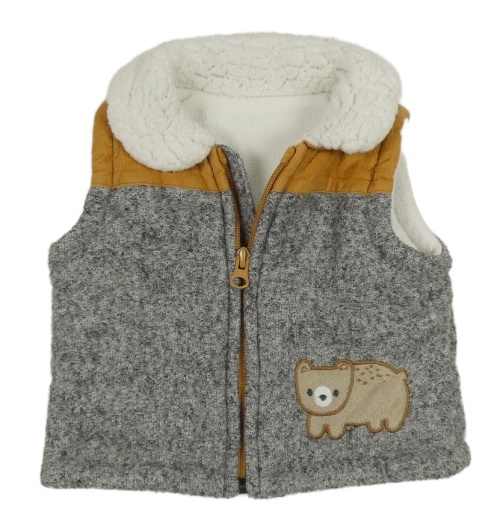 Sivo-hnedá pleteno/manšestrová zateplená vesta s medvěďom Nutmeg