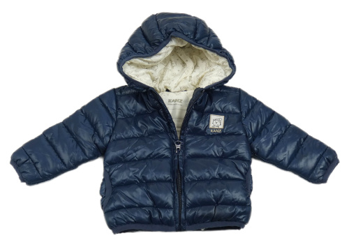 Tmavomodrá šušťáková prešívaná zimná bunda s kapucňou Kanz