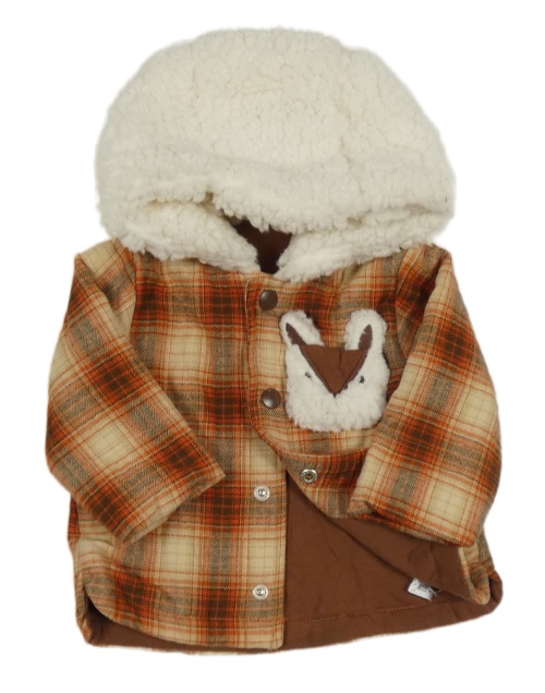 • Béžovo-červeno-hnedá kockovaná vzorovaná zateplená košeľová bunda s liškou/kapsou a kapucňou Nutmeg