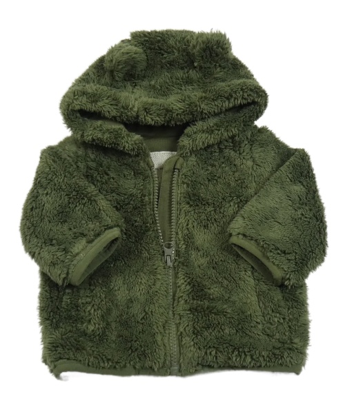 Khaki chlpatá podšitá bunda s kapucňou s uškami Tu