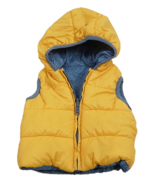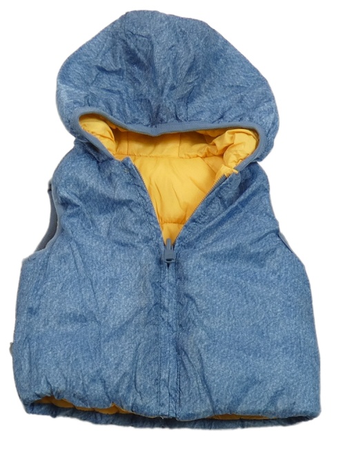 Modrá šušťáková obojstranná zateplená vesta s kapucňou