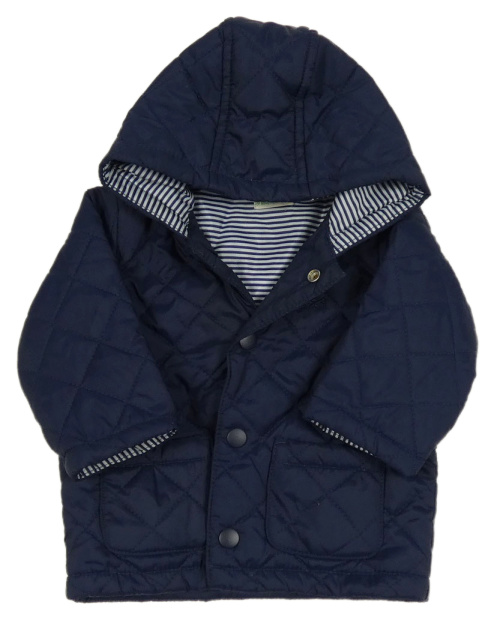 Tmavomodrá šušťáková prešívaná zateplená bunda s logom a kapucňou Benetton