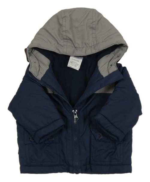 Tmavomodro-sivá šušťáková zateplená bunda s kapucňou