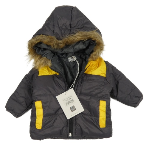Nové - sivo-žltá šušťáková zateplená bunda s kapucňou s kožešinou