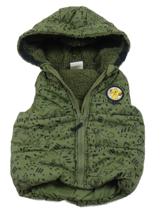 Khaki prešívaná šušťáková zateplená vesta so Simbou a kapucňou Disney
