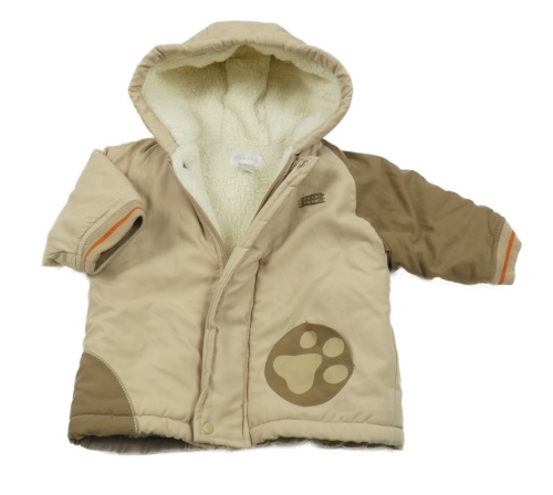 Béžovo-hnedá šušťáková zimná bunda s tlapkou a kapucňou Kiabi Bébé