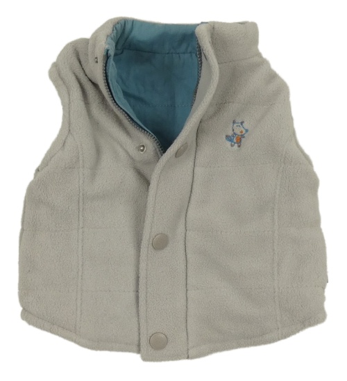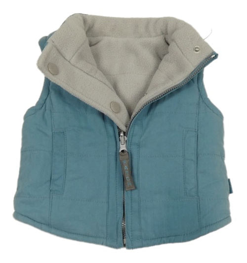 • Modrošedá prešívaná šušťáková zateplená obojstranná vesta s tučňáčkem Patch