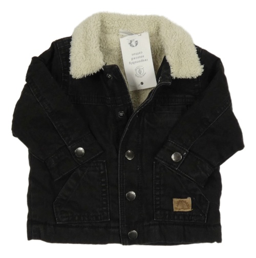 Nové - Čierna rifľová zateplená bunda s beránkem F&F