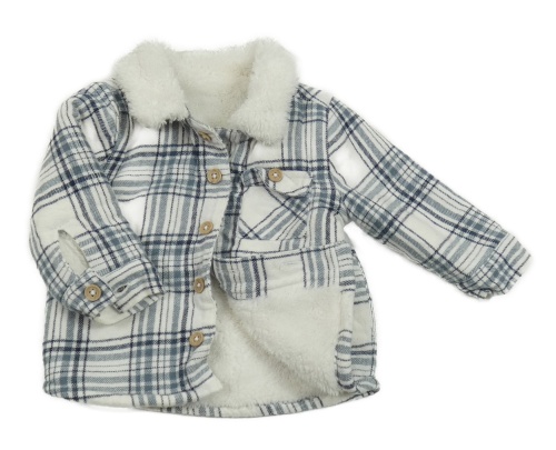 Šedomodro-tmavomodro-biela kockovaná košeľová zateplená bunda Tu