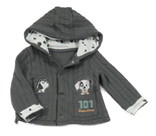 Tmavošedý žebrovaný vyteplený kabátek s dalmatinky a kapucňou PRIMARK
