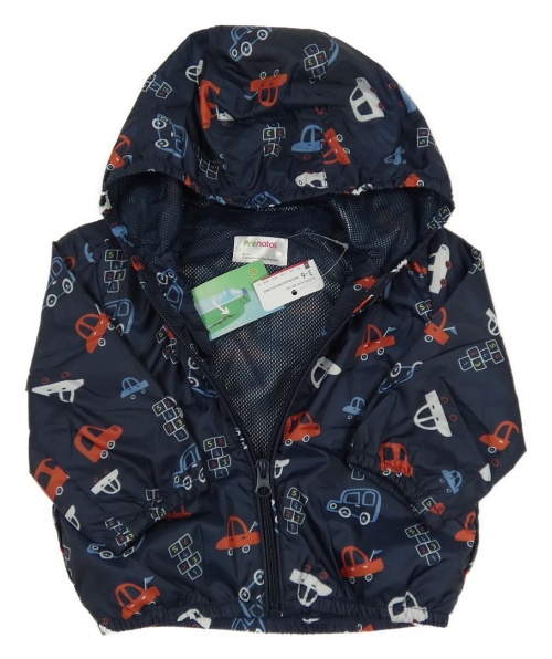 Nové - tmavomodrá šušťáková jarná bunda s autami a kapucňou Prénatal